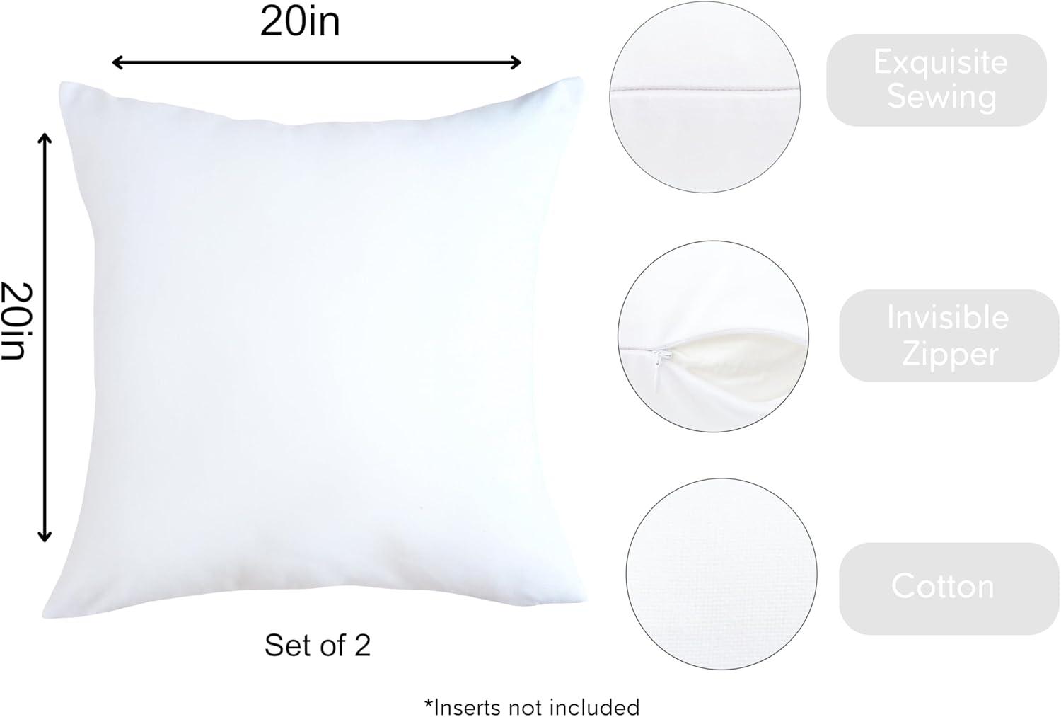 VALUE PACK – Each set includes 2 PurpleEssences Pure Cotton Canvas throw pillow covers, each measuring 20 inches x 20 inches.