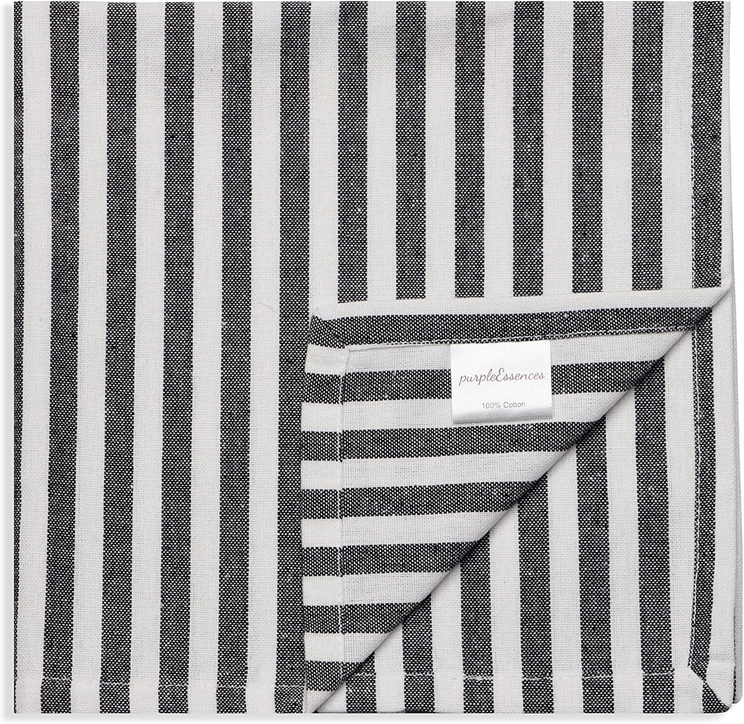 PurpleEssences Plain Striped Cloth Napkins – Set of 12-100% Cotton – 18 x 18 Inch – Fall Thanksgiving Halloween – Perfect Everyday Use Dinner Napkin – Black and White(Black White)