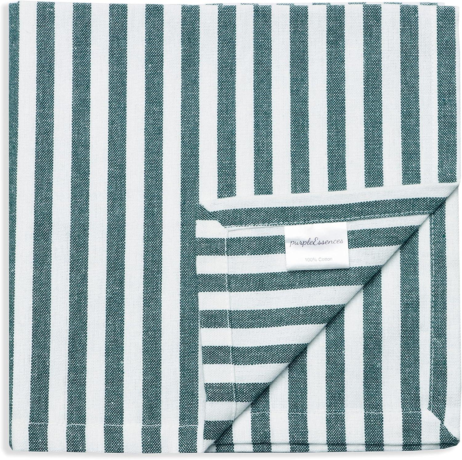 PurpleEssences Plain Striped Cloth Napkins – Set of 12-100% Cotton – 18 x 18 Inch – Fall Thanksgiving Halloween – Perfect Everyday Use Dinner Napkin – Black and White(Forest Green White)