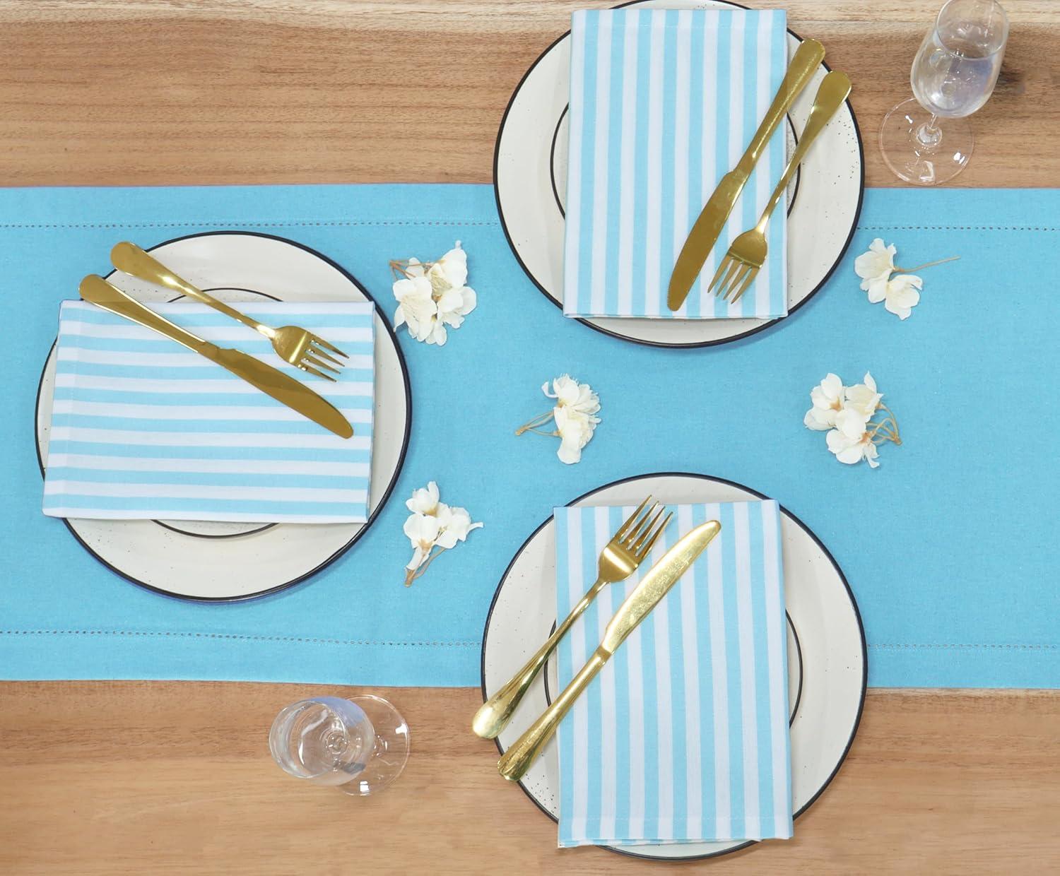 PurpleEssences Plain Striped Cloth Napkins – Set of 12-100% Cotton – 18 x 18 Inch – Fall Thanksgiving – Perfect Everyday Use Dinner Napkin – Aqua Blue White(Aqua Blue White)