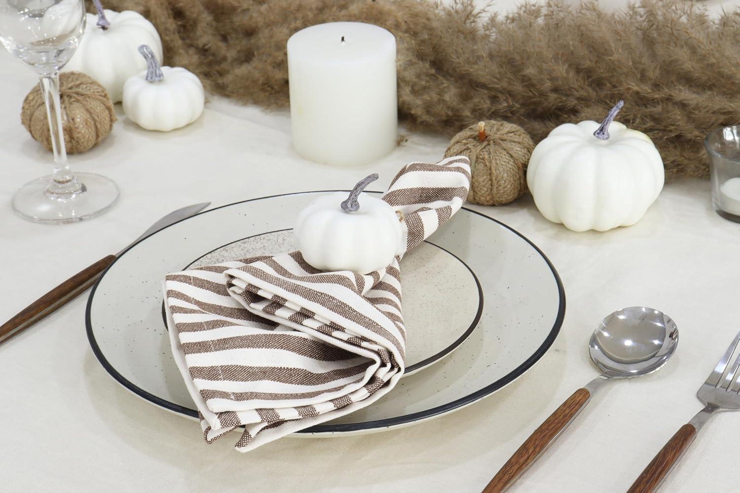 PurpleEssences Plain Striped Cloth Napkins – Set of 12-100% Cotton – 18 x 18 Inch – Fall Thanksgiving – Perfect Everyday Use Dinner Napkin – Aqua Blue White(Nut Brown Ivory)