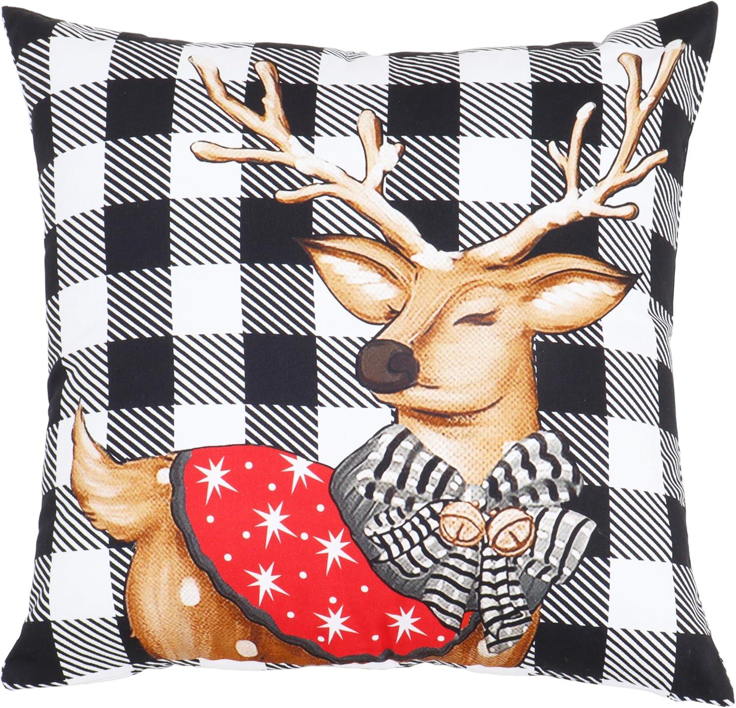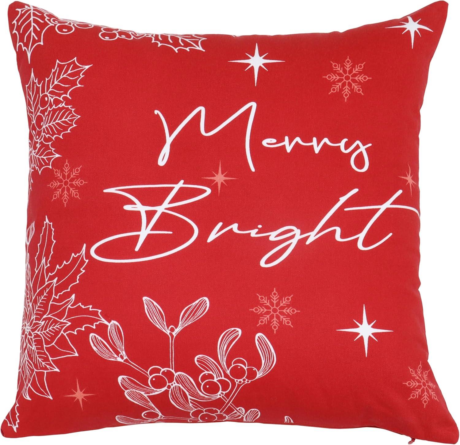 PurpleEssences Red Throw Pillow Covers, 18 x 18 Inch Christmas Winter Holiday Cushion Case Decoration for Sofa Couch Set of 4 – Red – Deer/Snowman/Merry Christmas/Bright(Red – Deer/Snowman/Merry Christmas/Bright)