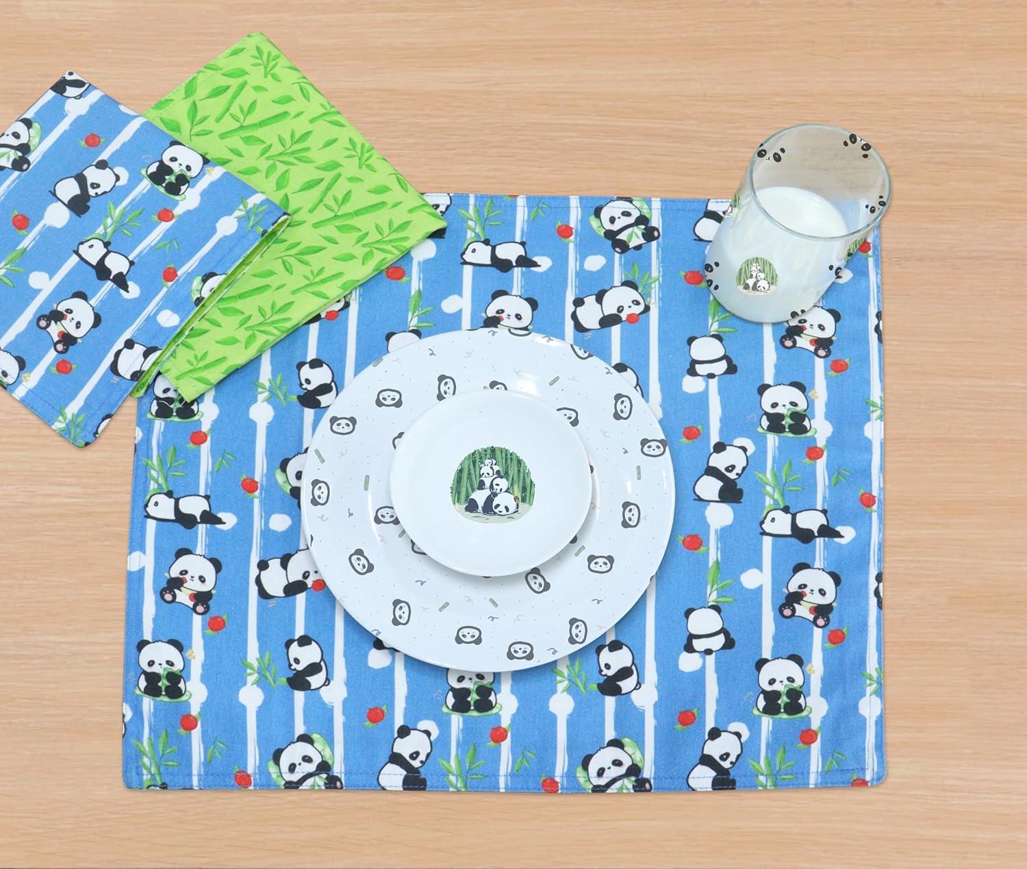 PurpleEssences Reusable Cloth Placemats | Reusable, Eco-Friendly | 15″x13″, 2-ply, Thick, Absorbent, Machine Washable | Set of 2 Placemats – Dinosaurs Alpha(Panda)