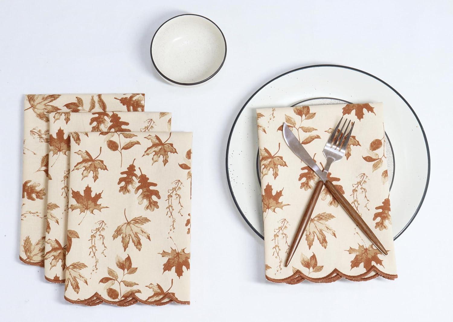 PurpleEssences Scalloped Embroidery Cloth Napkins Table Decor Fall Thanksgiving 100% Cotton Set of 4-18 x 18 inch – Aurelia Edges – Rust(Aurelia(edges – Rust))