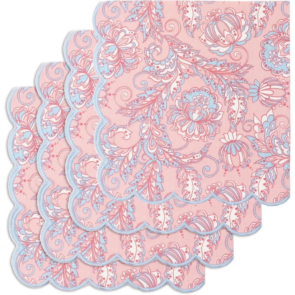PurpleEssences Scalloped Embroidery Cloth Napkins Table Decor Fall Thanksgiving 100% Cotton Set of 4-18 x 18 inch – Aurelia Edges – Rust(Blush Pink Edges – Light Blue)