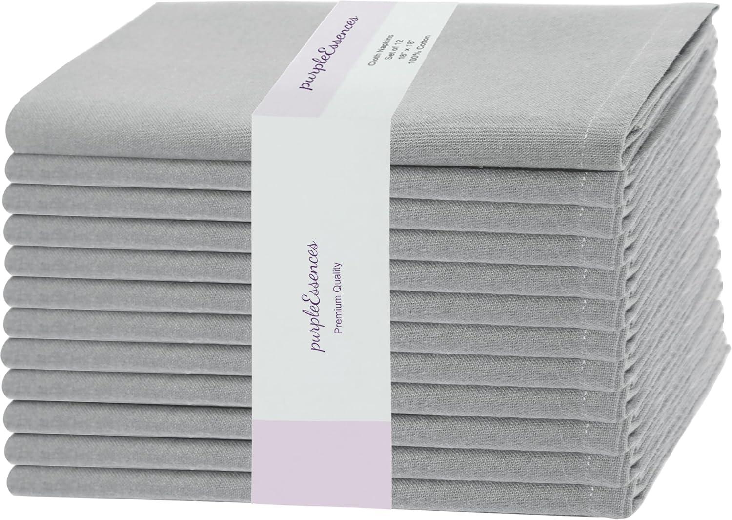 PurpleEssences Pure Cotton Dinner Napkins: Elevate your dining with our set of 12 premium 100% cotton napkins, each measuring 18×18 inches.