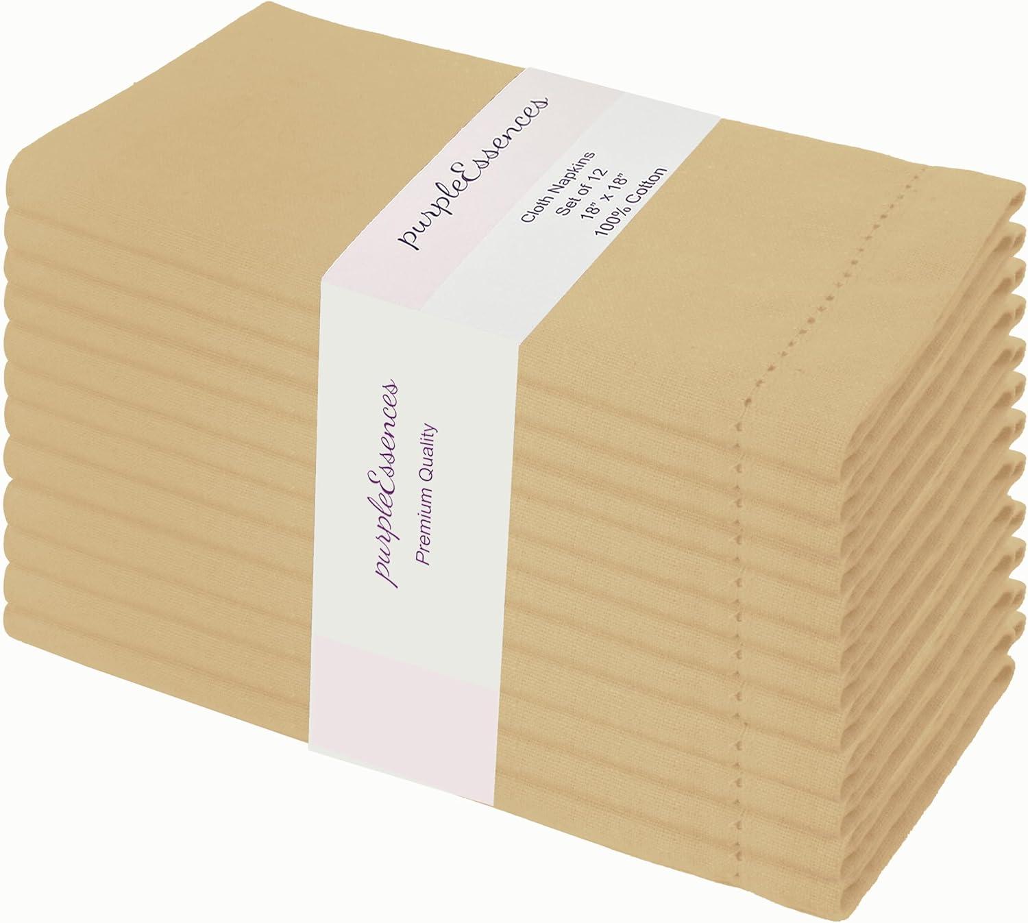 PurpleEssences Pure Cotton Dinner Napkins: Elevate your dining with our set of 12 premium 100% cotton napkins, each measuring 18×18 inches.