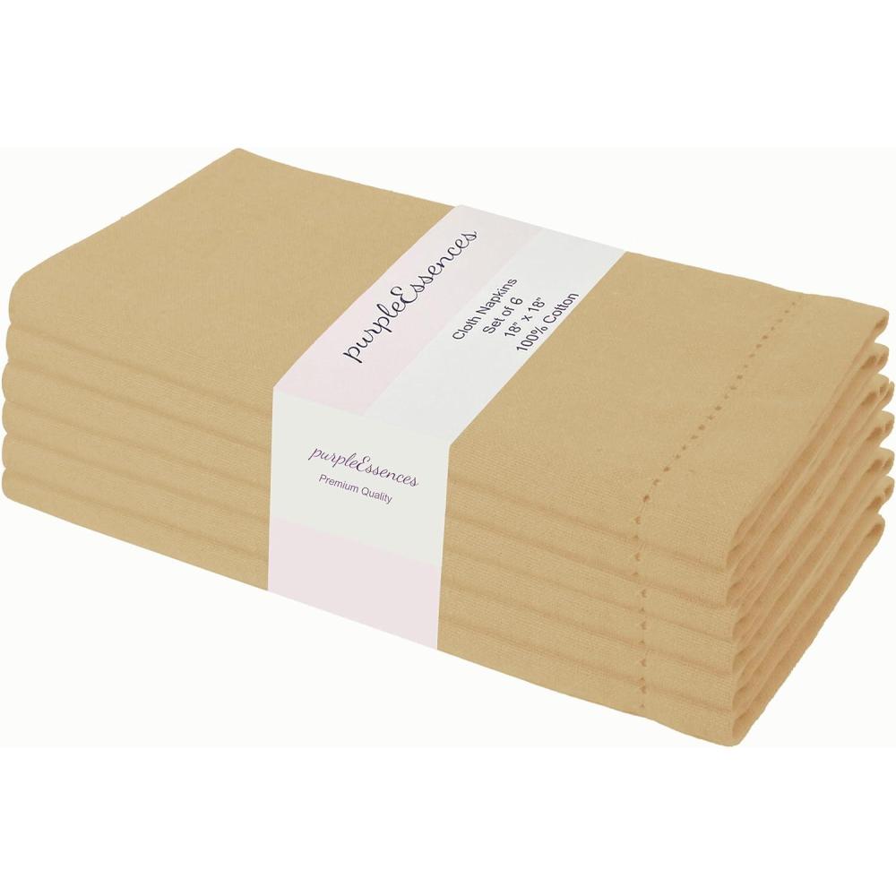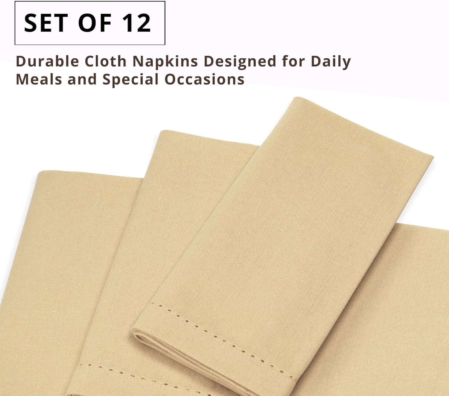 PurpleEssences Set of 12 Hemstitch Cloth Dinner Napkins 100% Cotton – Soft Durable Washable – Ideal for Wedding Fall Thanksgiving Halloween – Perfect Everyday Use Table Linen 18×18 – Black(Beige)