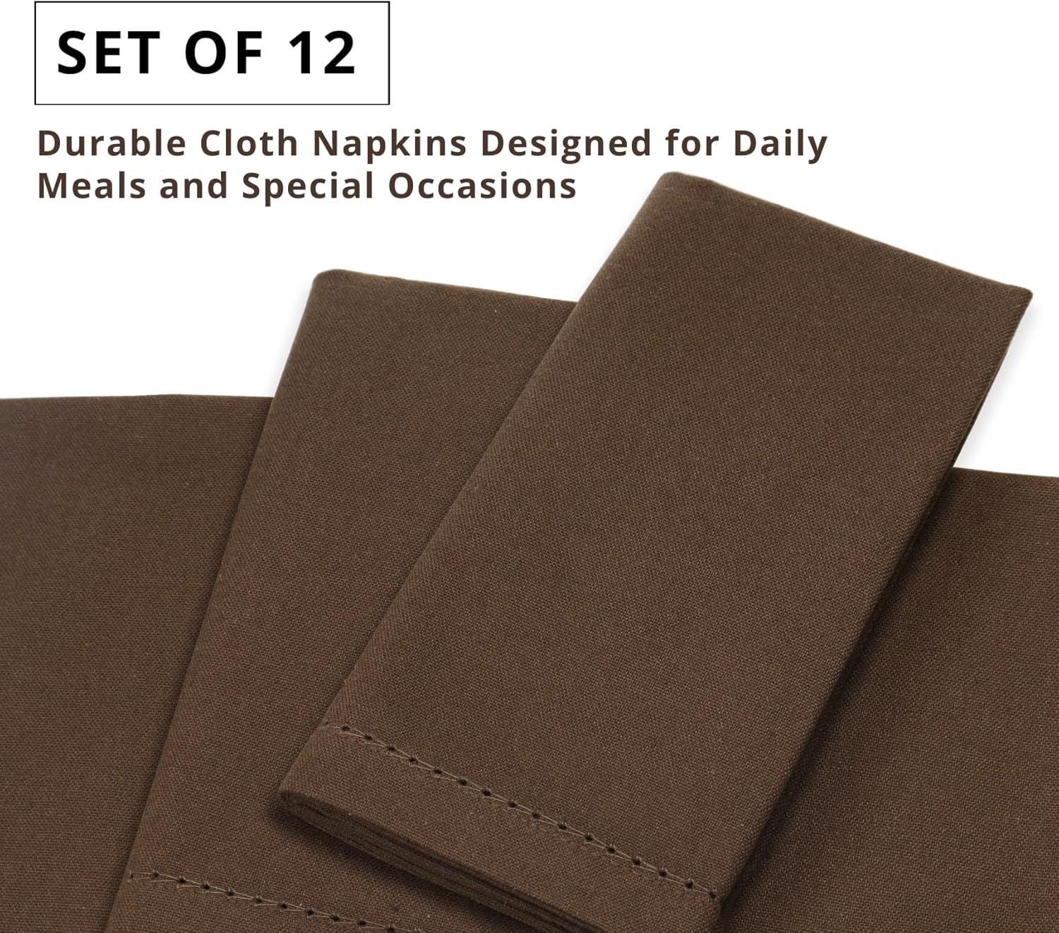 PurpleEssences Set of 12 Hemstitch Cloth Dinner Napkins 100% Cotton – Soft Durable Washable – Ideal for Wedding Fall Thanksgiving Halloween – Perfect Everyday Use Table Linen 18×18 – Black(Nut Brown)