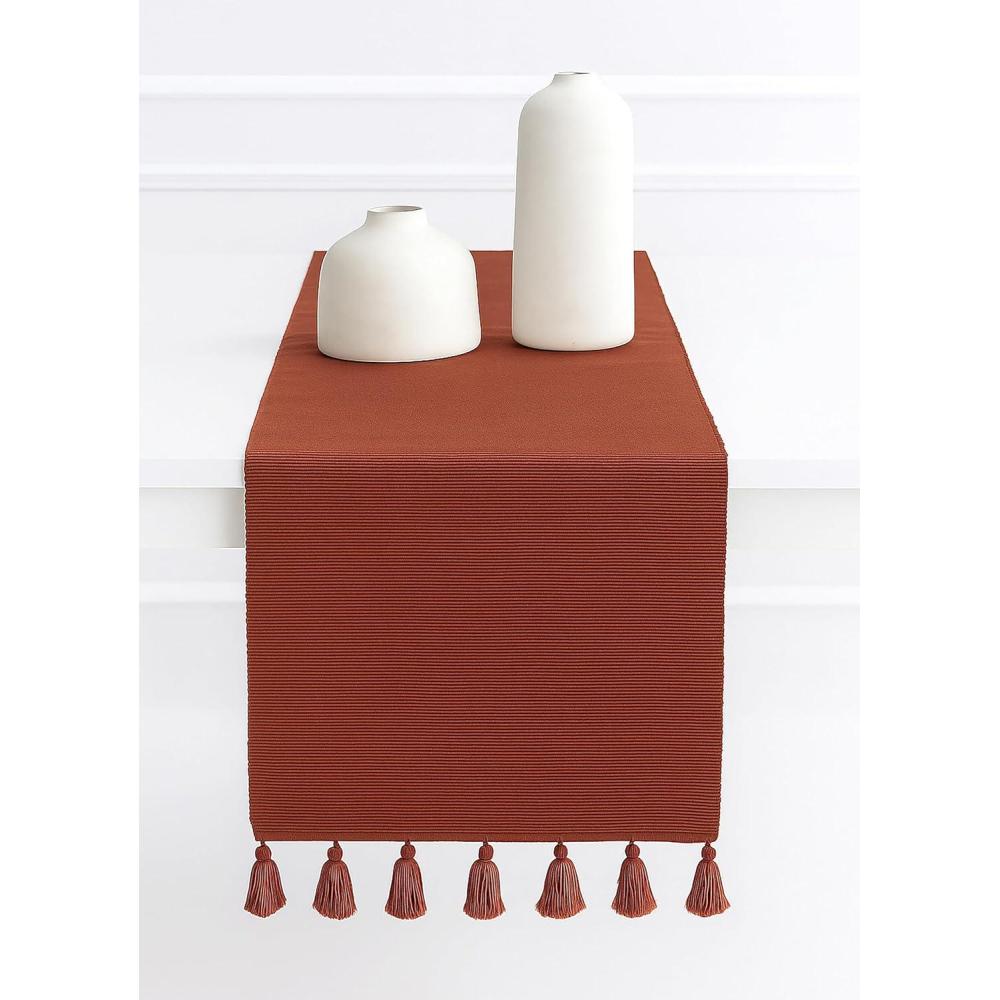 PurpleEssences Solid Ribbed Woven Table Runner with Multi-Tassels Farmhouse Dining Room – Perfect for Every Day and Seasonal Decor – Fall Thanksgiving – 13×90 Inches – Olive Green(Rust)