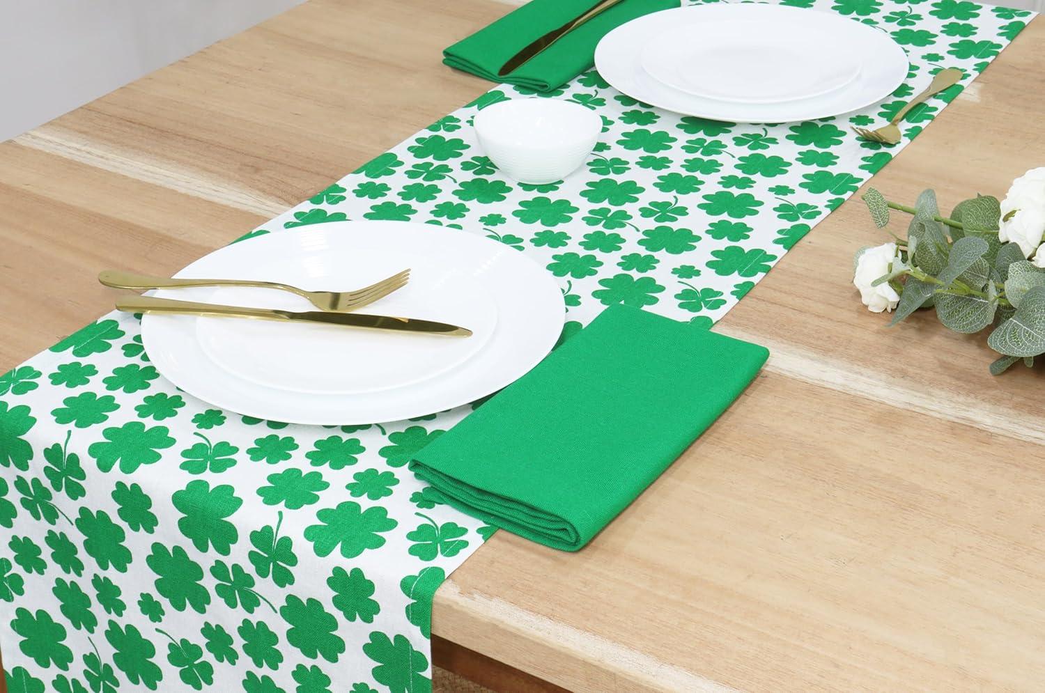 Perfectly Sized Decor: Measuring 13×72 inches, this dining room table runner fits standard tables with the ideal overhang when laid lengthwise. This green party table decor adds a refined and holy touch to your St. Patrick's table setting.