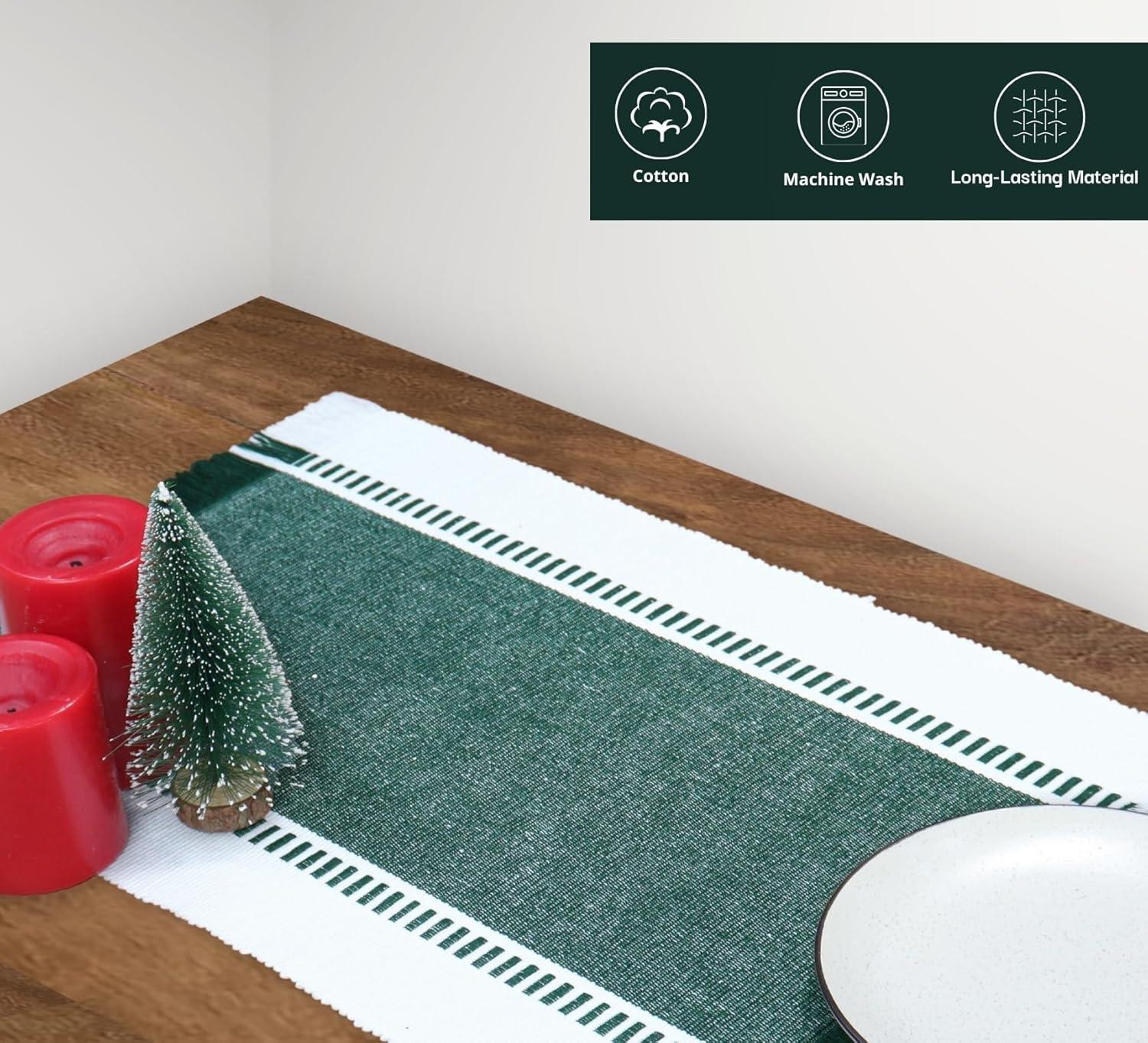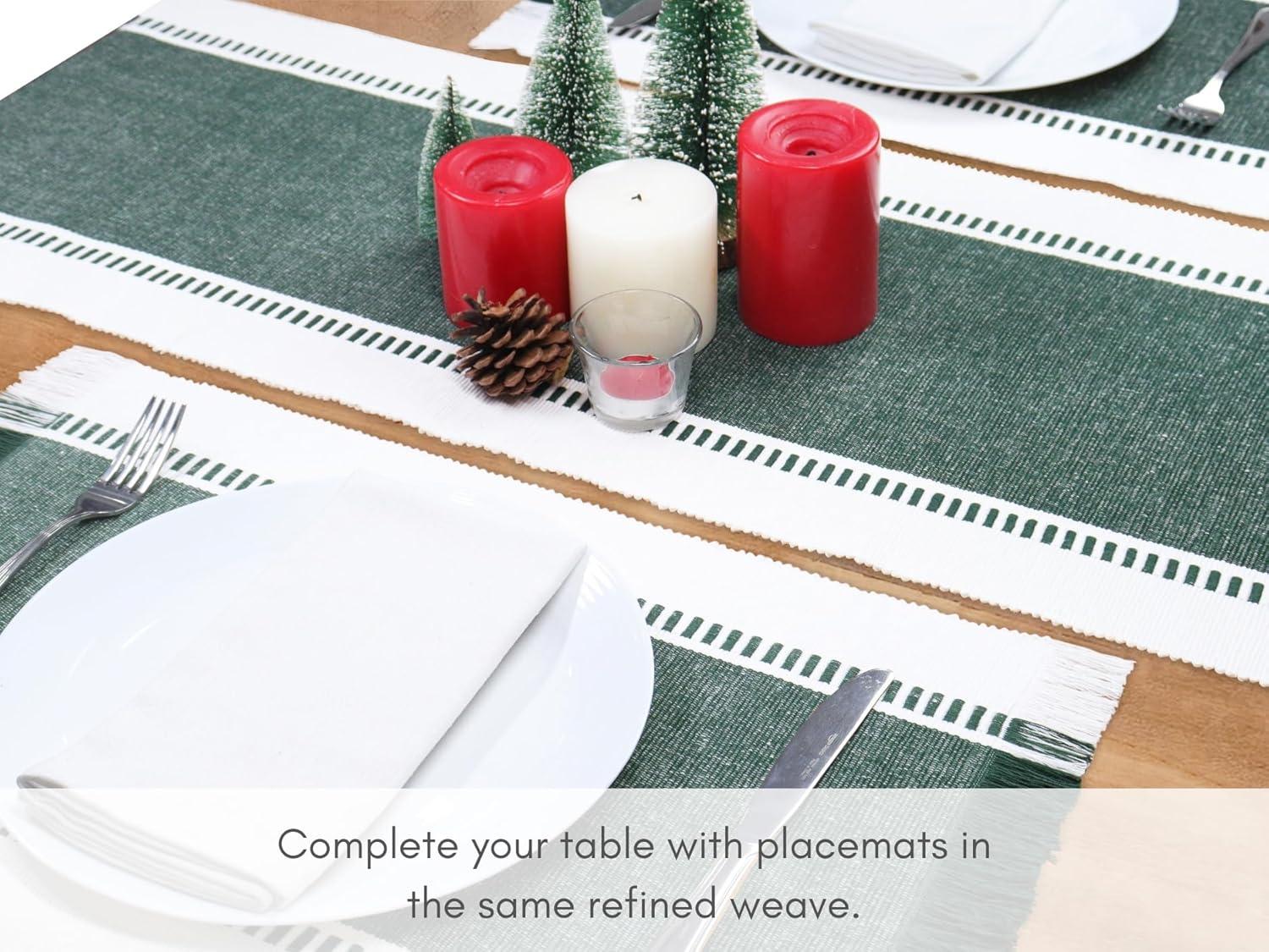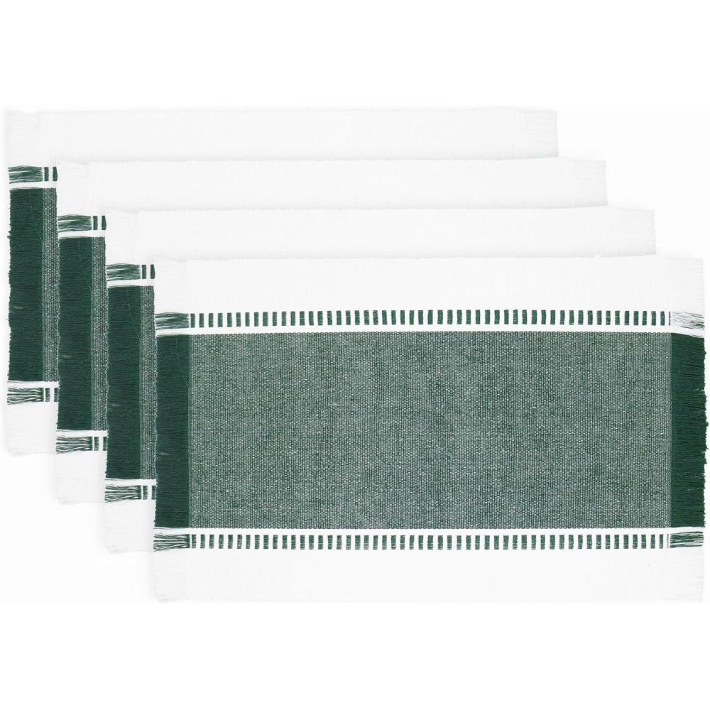 PurpleEssences Stripe Ribbed Placemats with Fringes 100% Cotton, Set of 4, 13×19 Inch, Thick Durable Table Mats for Dining, Kitchen, or Casual Farmhouse Tabletop Décor – Red and H.White(Forest Green and H.white)