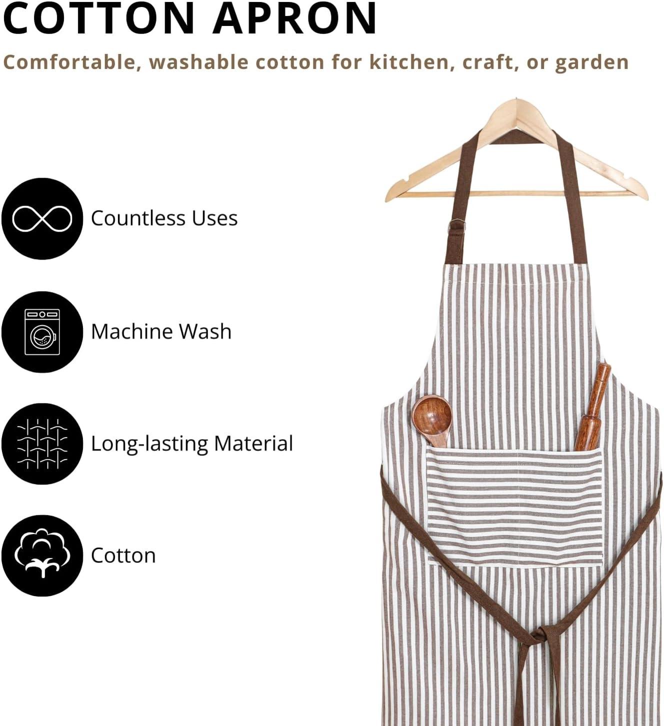 PurpleEssences Striped Adjustable Kitchen Aprons with 2 Pockets, Cotton – Soft Durable for Home or Restaurant for Men & Women(Small Stripe – Cream Nut Brown)
