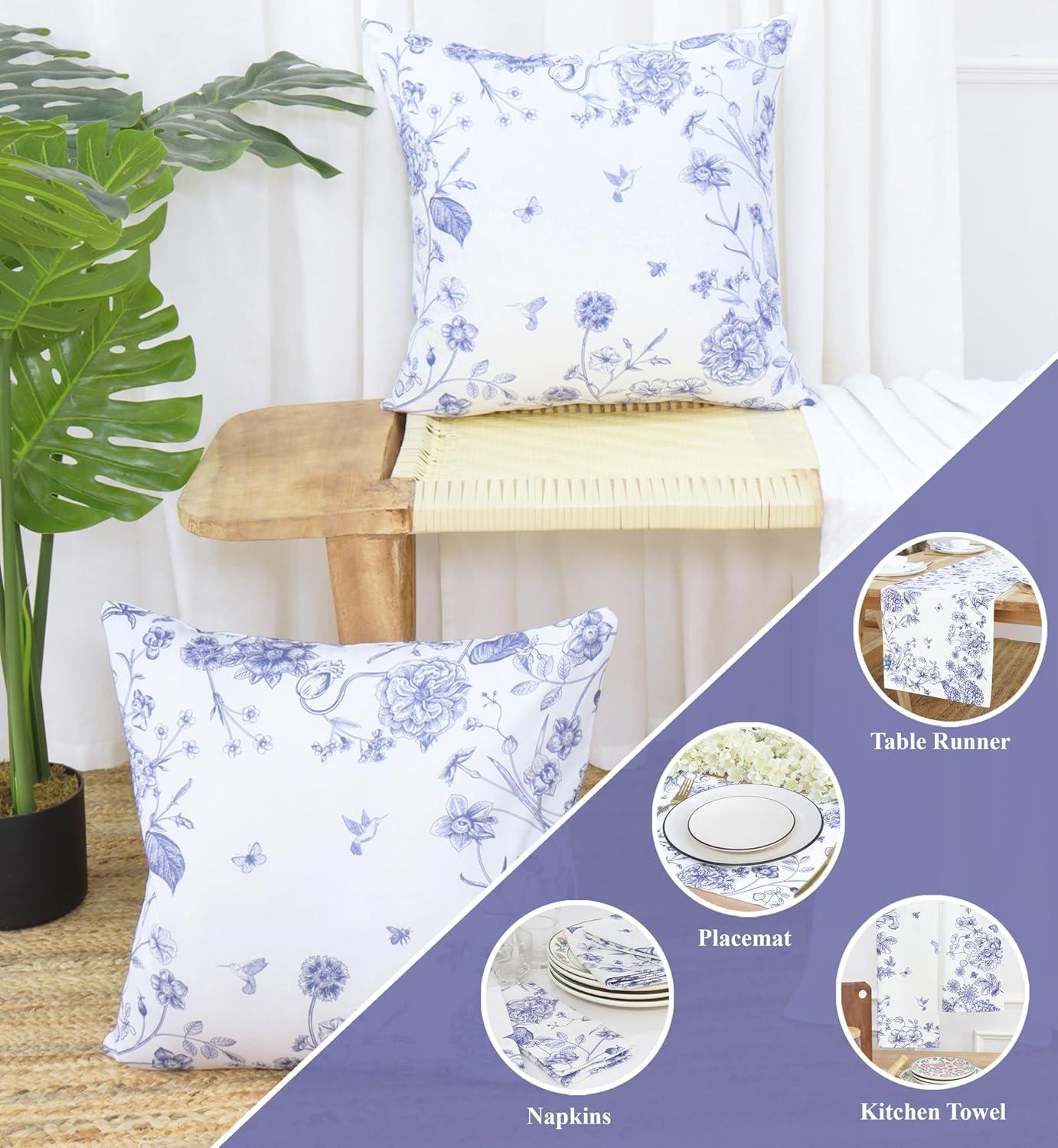 PurpleEssences Throw Pillow Covers – 18×18 Inch – Floral Spring Cushion Covers – for Seasonal Living Room Decor – Chintz Jacobean(French Flower Garden)