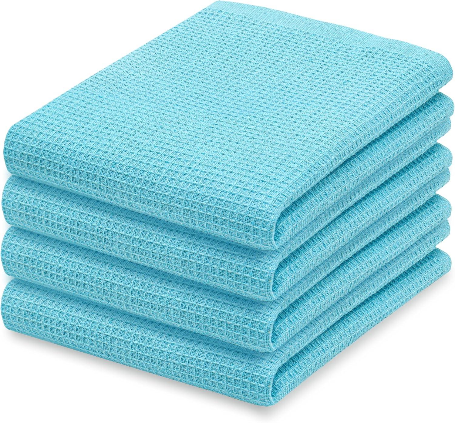 PurpleEssences Waffle Weave Kitchen Towel, 100% Cotton – 15 x 25 Inches, with Hanging Loop Ultra Soft Absorbent Quick Drying Dish Cloth, Tea and Hand Towels, 6 Pack – Fall Thanksgiving – Aqua Blue(Aqua Blue)