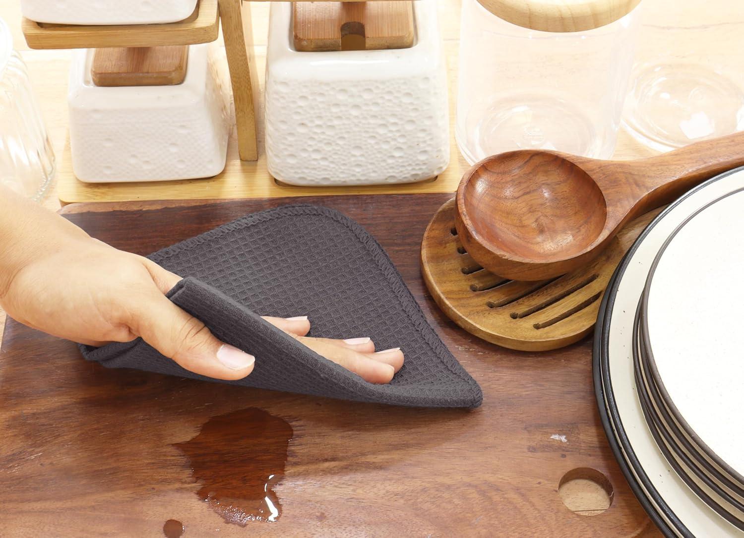 EASY CARE – For better absorbency, wash the dish towels before first use. Cotton waffle Dish Cloths are thinner and flatter when new, and shrink after washing to form cozy little honeycombs which make it an absorbent dish towel. They can be machine washed multiple times in cold/hot water with similar colors for easy cleaning after any big spill or heavy load of dishes.