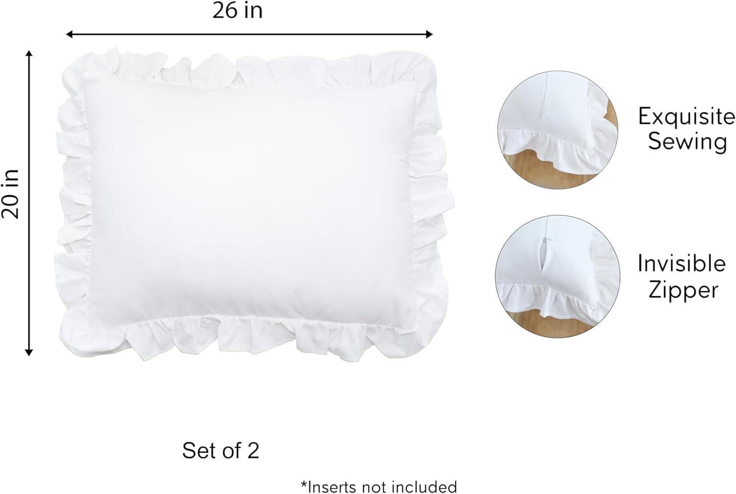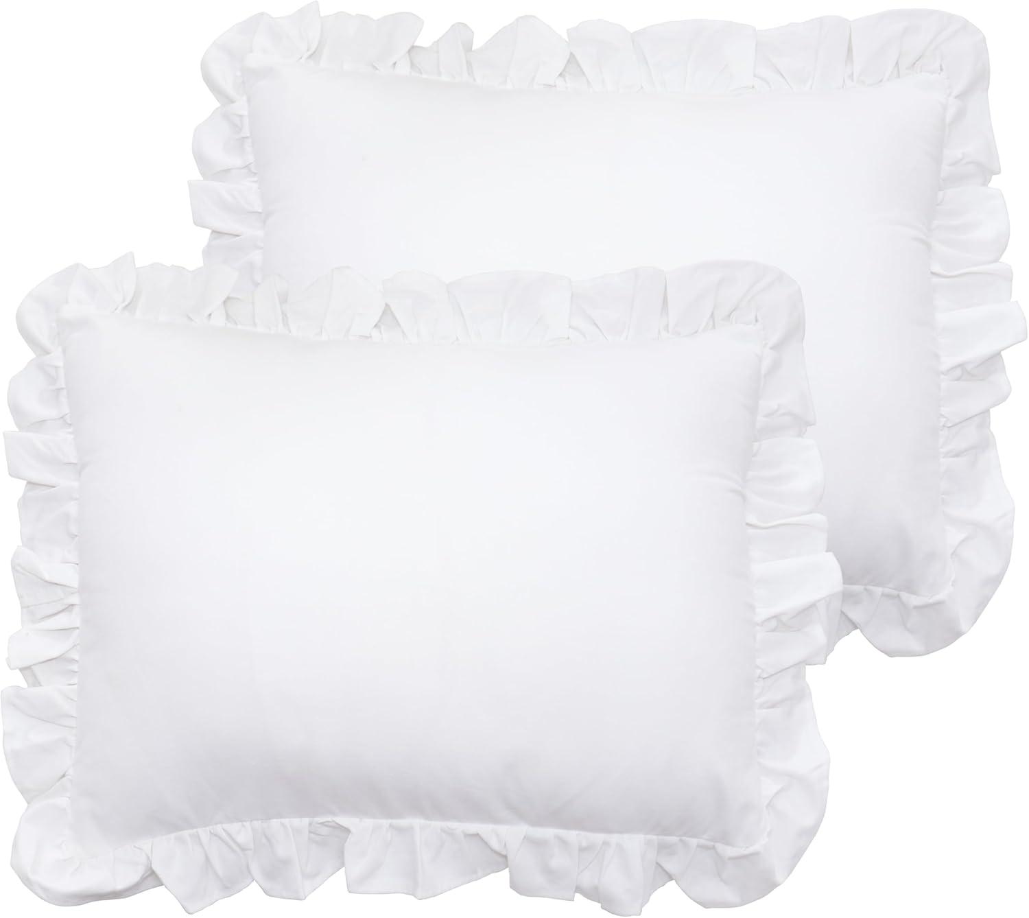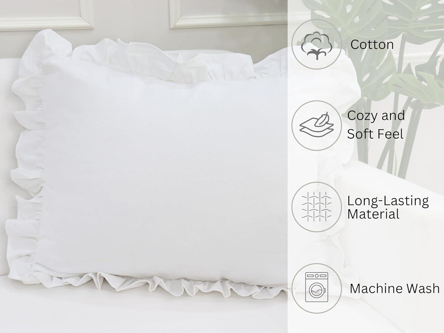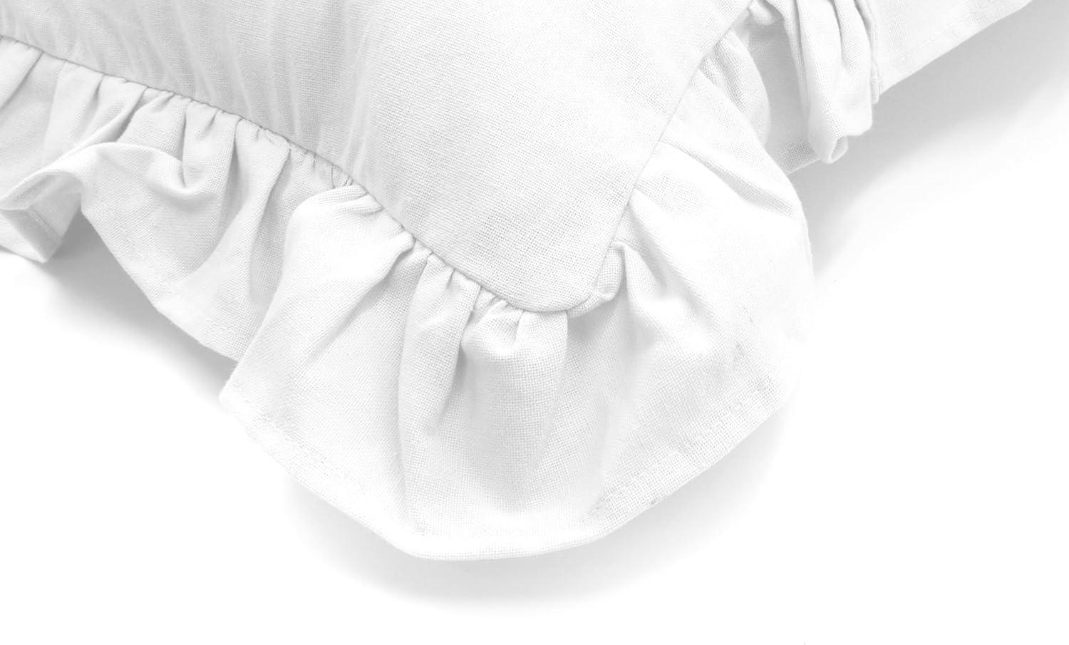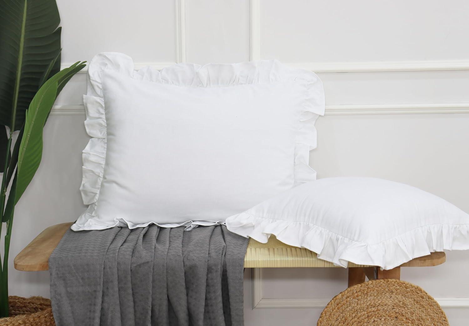 PurpleEssences White Ruffled Solid Throw Pillow Covers Set of 2 Chic Cotton Decorative Cushion Case for Sofa Couch Bed Living Room Farmhouse Boho Décor, 18 x 18 Inch(White)