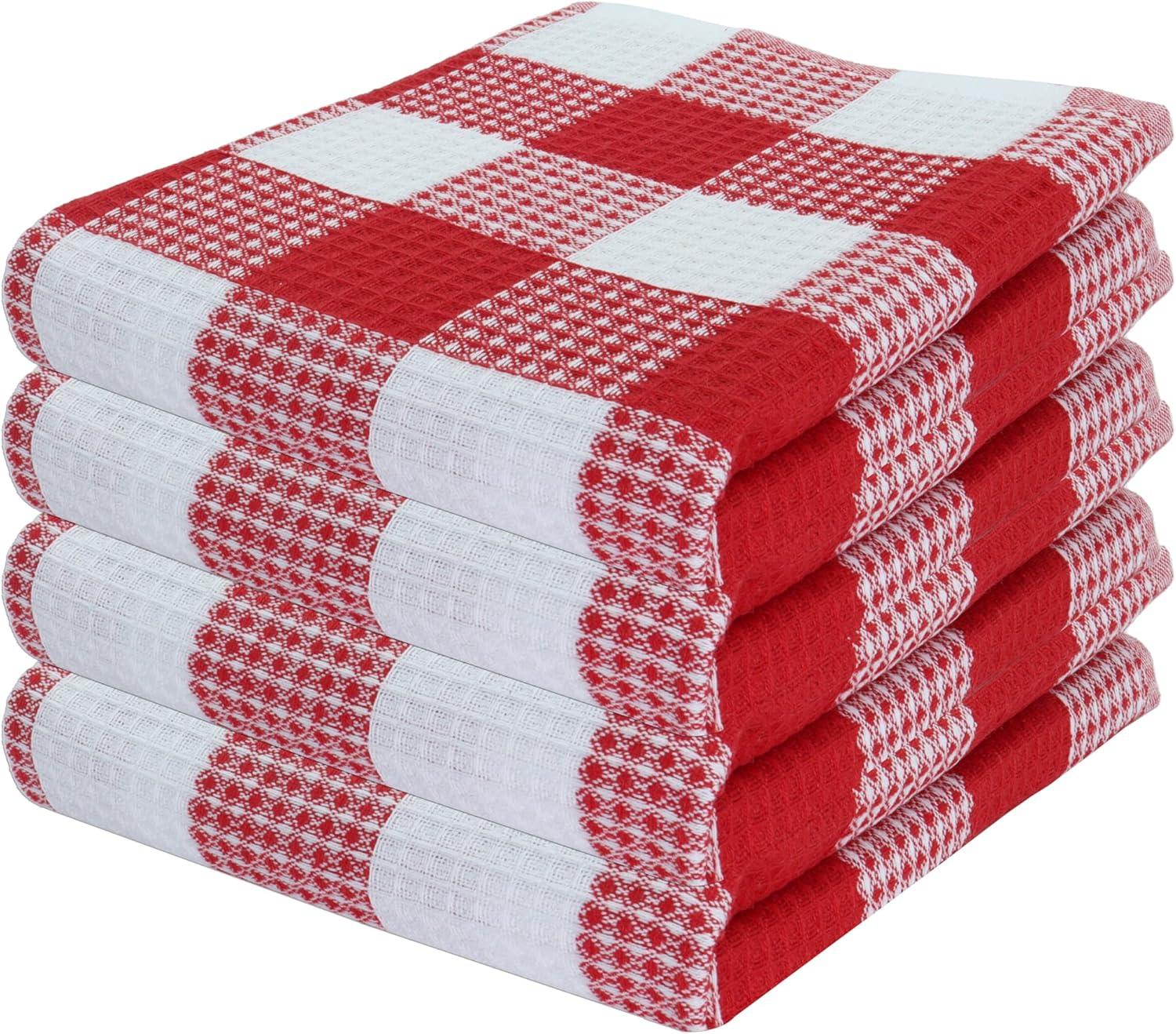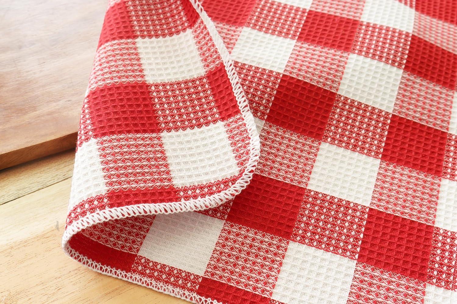 Waffle Weave Plaid Dish Cloths, 100% Cotton – 12 x 12 Inches, Ultra Soft Absorbent Quick Drying Dish Towels Buffalo Check Dish Rags for Kitchen, 8 Pack – Fall Thanksgiving – Black & White(Red White)