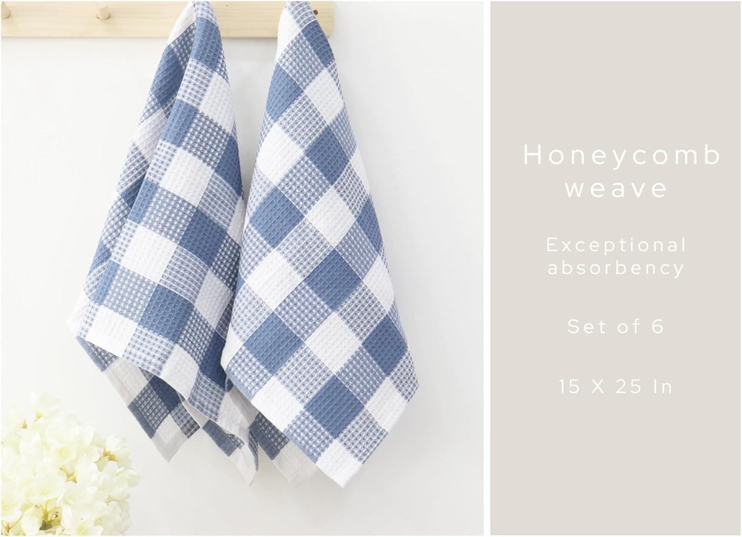 Waffle Weave Plaid Dish Cloths, 100% Cotton – 12 x 12 Inches, Ultra Soft Absorbent Quick Drying Dish Towels Buffalo Check Dish Rags for Kitchen, 8 Pack – Fall Thanksgiving – Black & White(Smoky Blue White)